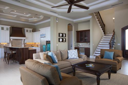 We recently completed a beautiful new house plan influenced by British West Indies architecture called The Caribbean Breeze. This new house plan is perfect for the golf course lot it was designed for in Estero, Florida. This comfortable single story, family room floor plan provides 5,377 square feet of living space with four bedrooms, four full baths and two half baths, a study, formal living and dining areas, oversized family room and large island kitchen. Outdoor features include pool with spa and sun shelf, outdoor lounge area with summer kitchen and fireplace, built-in fire pit and a spacious five car garage with a circular motor court. Through the main entry of this West Indies house plan it features vaulted ceilings and exposed rafters, the formal living room offers a...