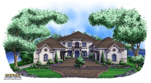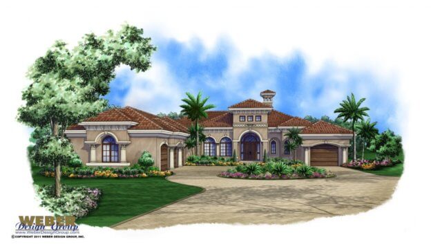 Uniquely Themed Tuscan style house plan The architects and designers here at Weber Design Group have been designing custom luxury homes throughout Southwest Florida and all over the United States for over 20 years. We were excited for the opportunity to work with a client from North Carolina whose passion for her children and their love of all things equestrian took top priority in the custom design of their new lakefront home. This unique three-story house plan optimizes the luxury of waterfront living with stunning lake views from practically every room. The overall style is greatly influenced by a rustic, Tuscan style horse stable with the use of cedar brackets and corbels, stucco and precast and two flanking garages that include a faux hayloft door capped by cedar trellises....