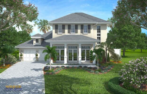 It’s rather obvious that the Coastal style house plans are quickly rising in popularity, making them a close competitor to the always prevalent Mediterranean style house plans and West Indies House Plans; this month in the battle for the hottest house plan it was clear that Coastal takes the cake! We had a tie for third place with the Mustique Model and the Tavernier Model. Both plans are 2-story Coastal house plans with a great room layout and similar square footage. The Mustique Model below is perfect for a waterfront lot with virtually every room complimenting waterfront views. Offering 3 – 4 bedrooms and 3.5 baths, this home also features 20 feet of sliding glass doors that tie back to an additional 8 feet of pocketing sliders. If a...