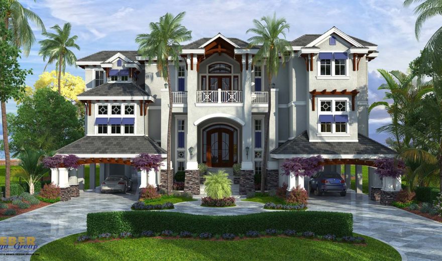 3 Floor Caribbean house plan designed for oceanfront island views and outdoor living. House plan designed by Naples architect Weber Design Group.