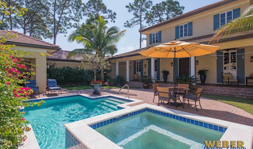 Photo of pool area in house plan designed by Naples architect Weber Design Group.