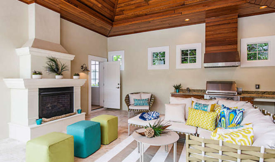 Outdoor living is a major highlight of the Cayo Costa house plan. The expansive covered lanai includes an outdoor kitchen and a built-in fireplace. As a result, this space is ideal for entertaining year-round. Additionally, the layout works perfectly for rear-view oriented lots.
