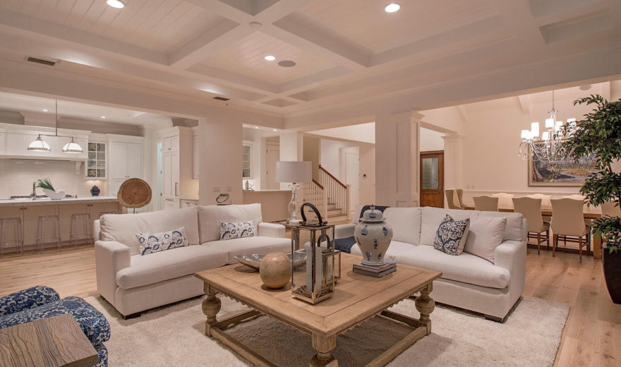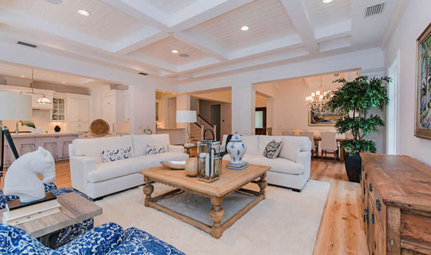 The Cayo Costa house plan delivers classic Olde Florida charm with casual elegance and open living. This two-story house plan offers 4,630 square feet, five bedrooms, five full baths, and two half baths. In addition, the design features a welcoming covered front porch with Hardie board siding and a traditional metal roof.