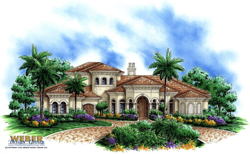 The Ixora III house plan delivers a refined two-story Mediterranean design with a dramatic grand entry. Immediately upon arrival, the foyer opens to a formal living room. Large picture windows line the rear wall. As a result, the space captures expansive waterfront views.
