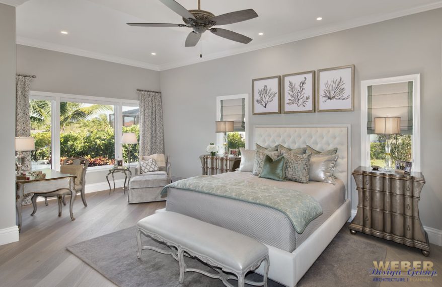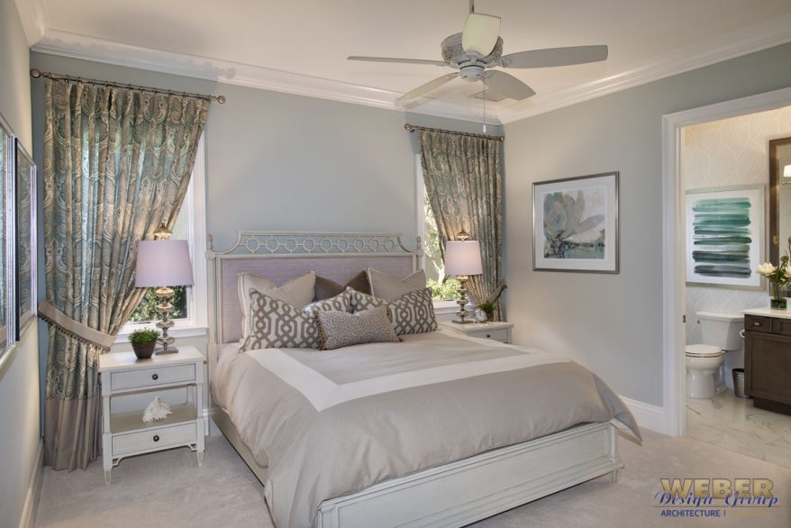 The Serrano House Plan includes four well-designed bedrooms that emphasize privacy and comfort. The primary suite offers a true retreat within the home. It features a spa-inspired bathroom, spacious walk-in closets, and direct access to the lanai. Because of this thoughtful placement, the suite feels both secluded and connected to the outdoors. Meanwhile, the secondary bedrooms sit in separate areas of the plan, making them ideal for family members or visiting guests.